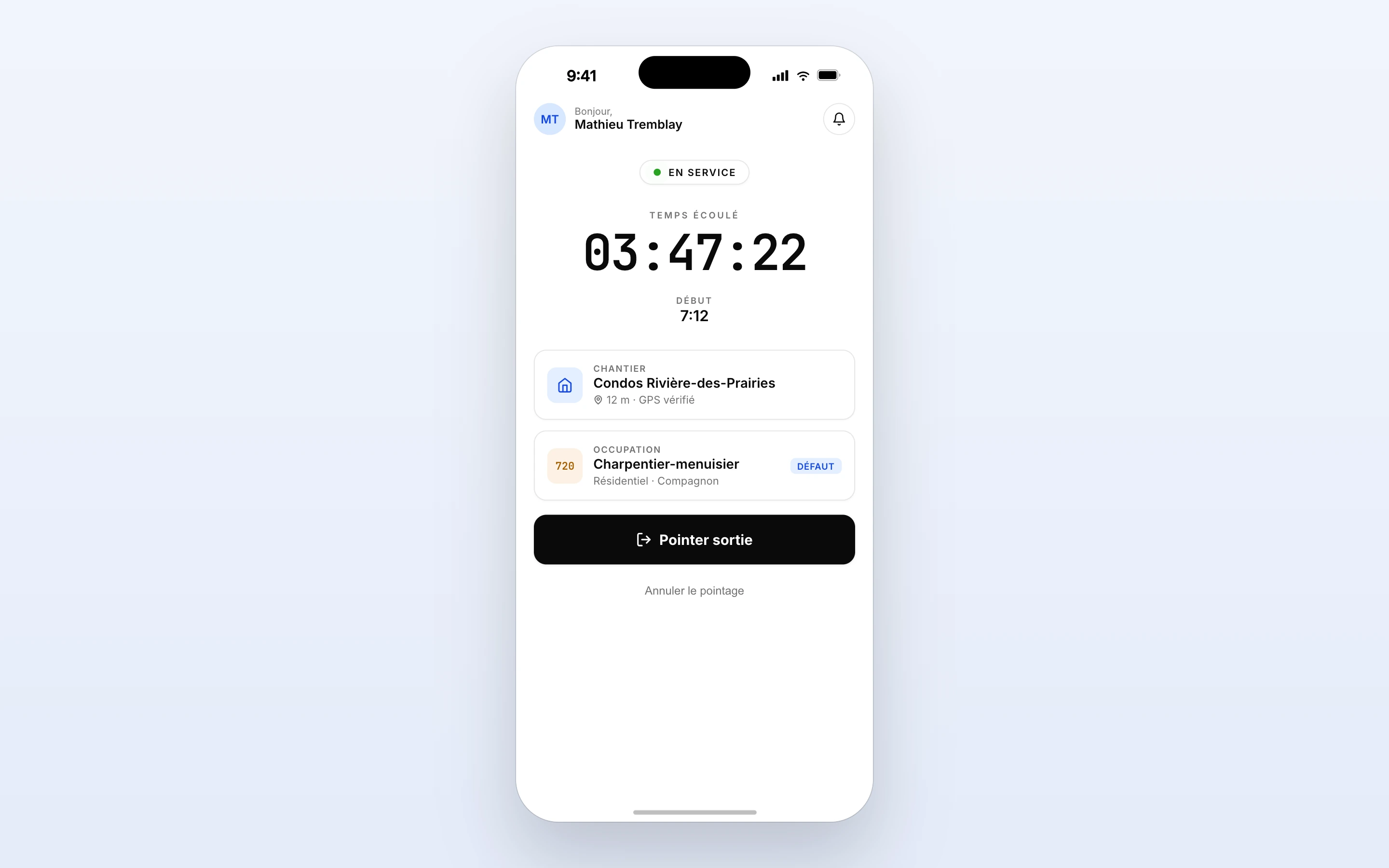 Une interface simple pensée pour les chantiers. Mobile, rapide, efficace.